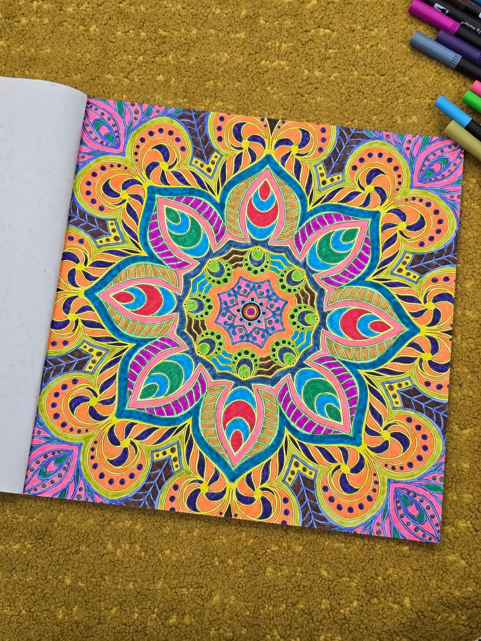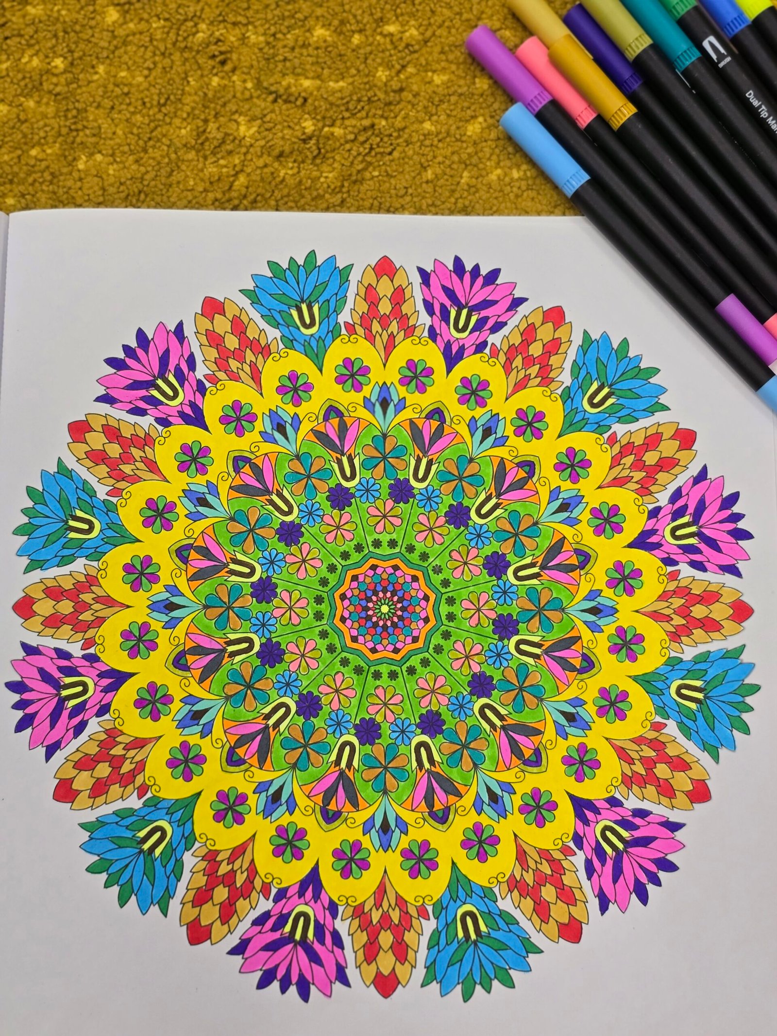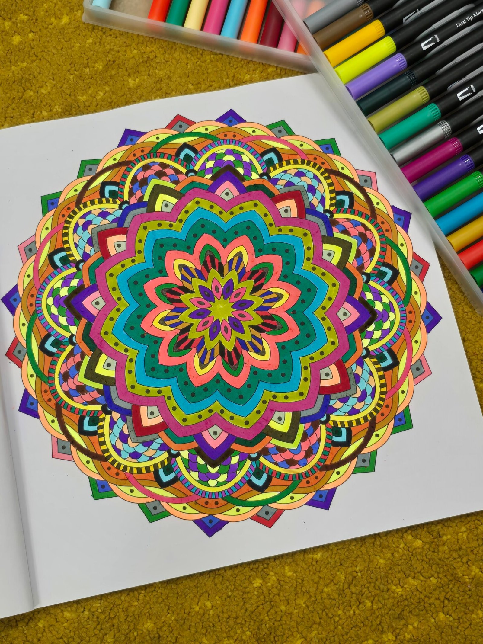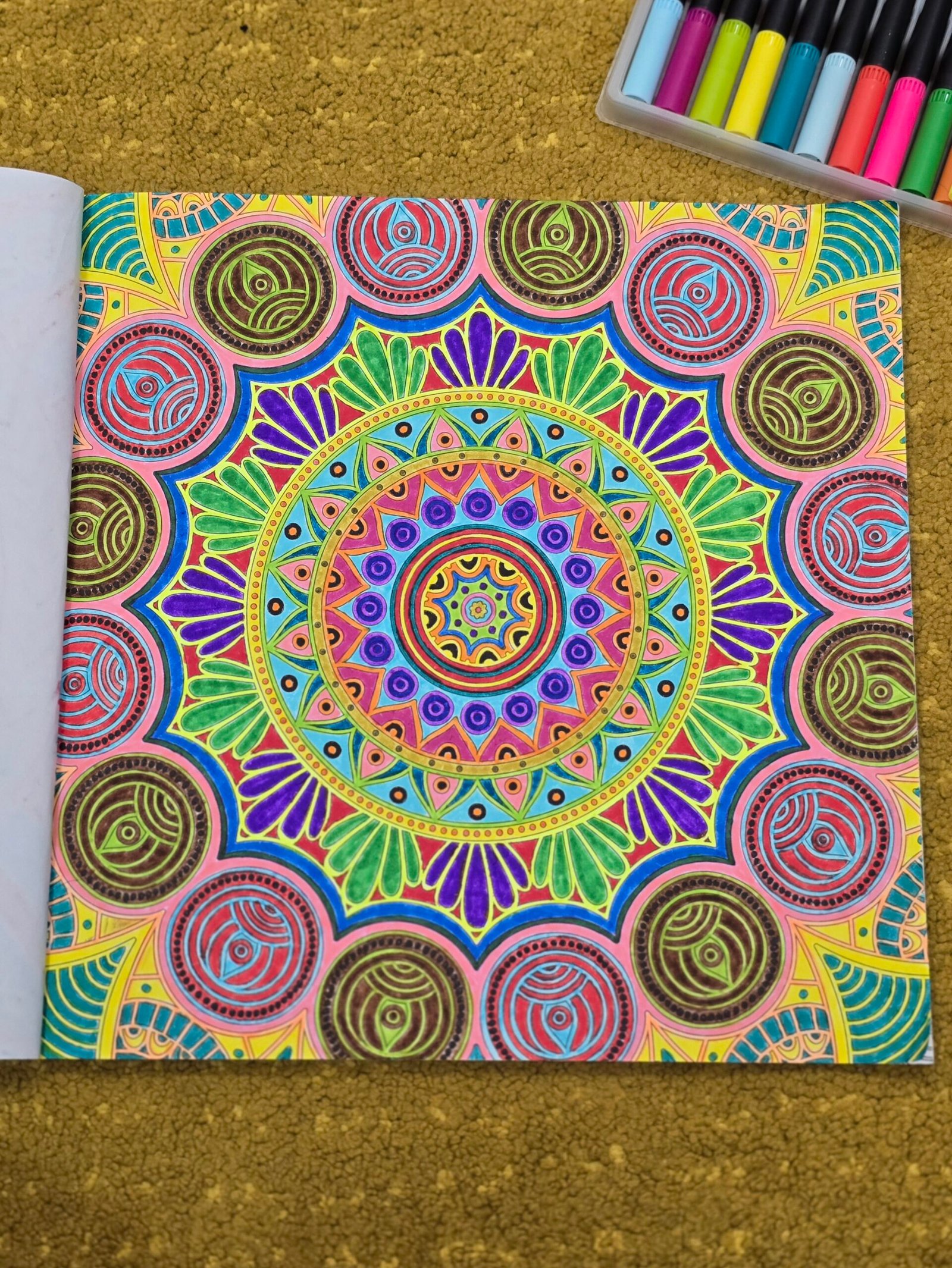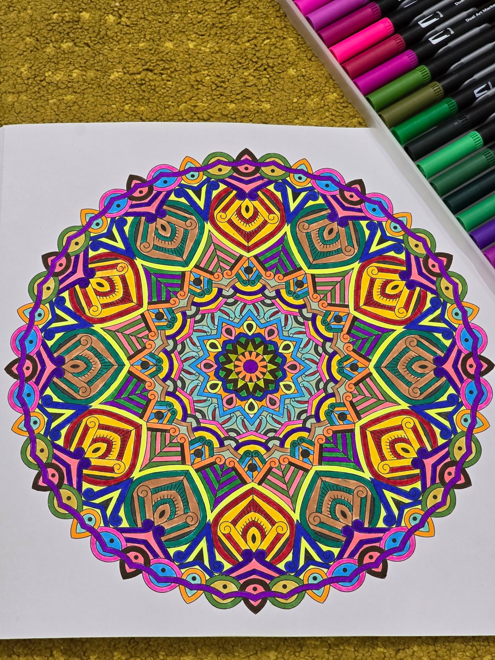 This gallery showcases my personal collection of colored mandala coloring artwork, created as a form of mindfulness and creative expression. Through color, repetition, and detail, each mandala represents a moment of presence and balance. These works are completed artworks, shared to reflect the process and emotional depth behind mandala coloring.
