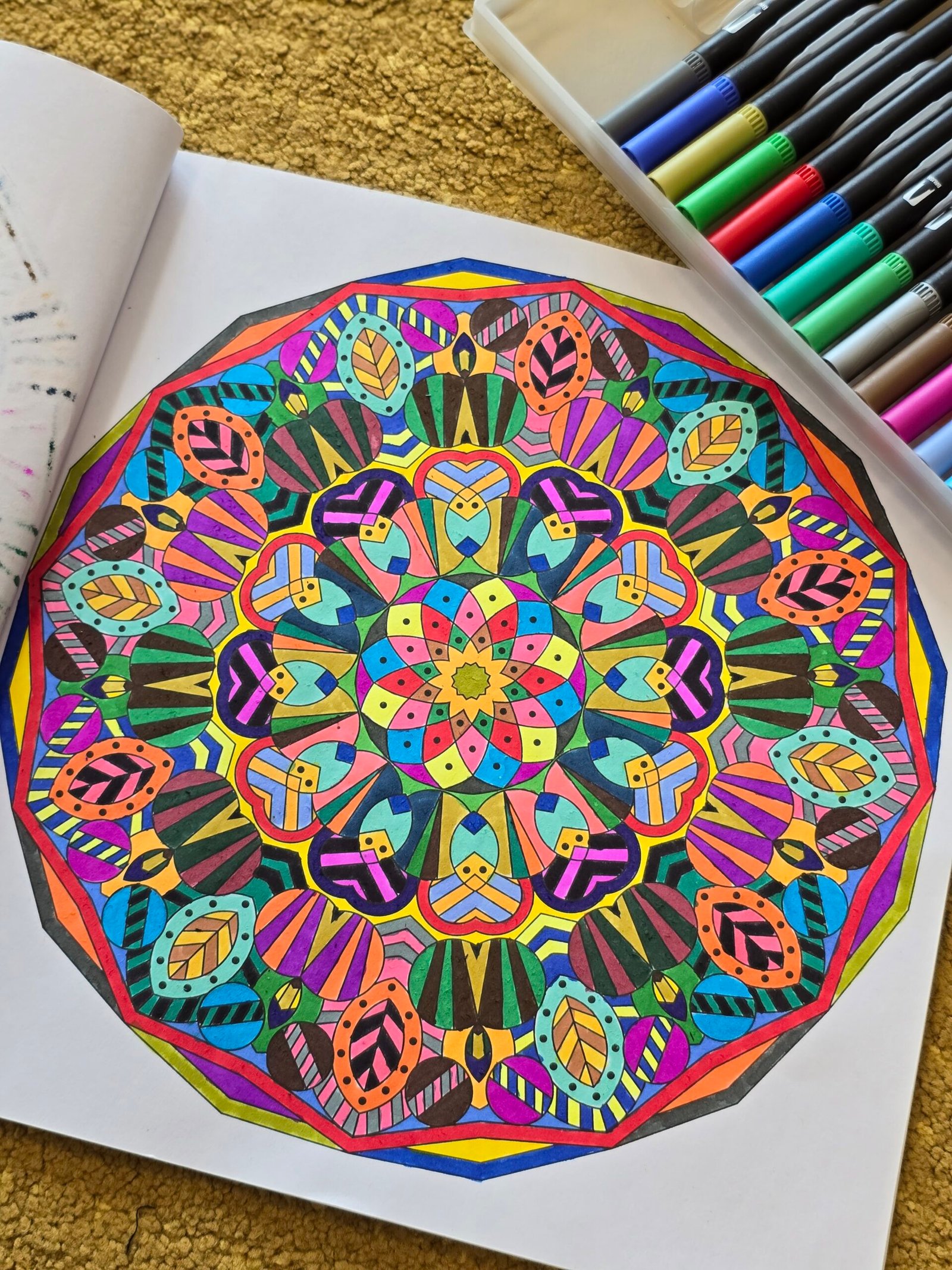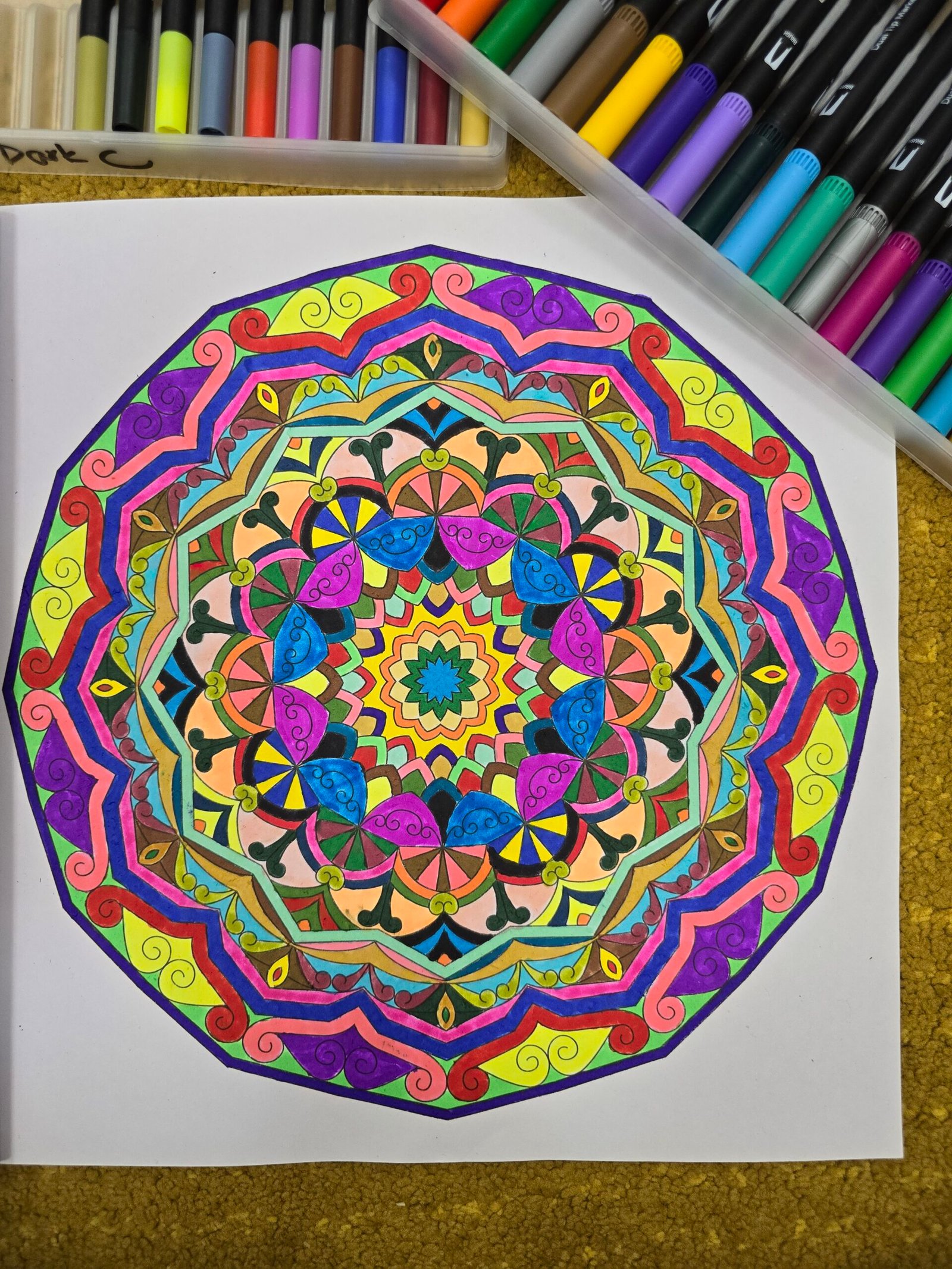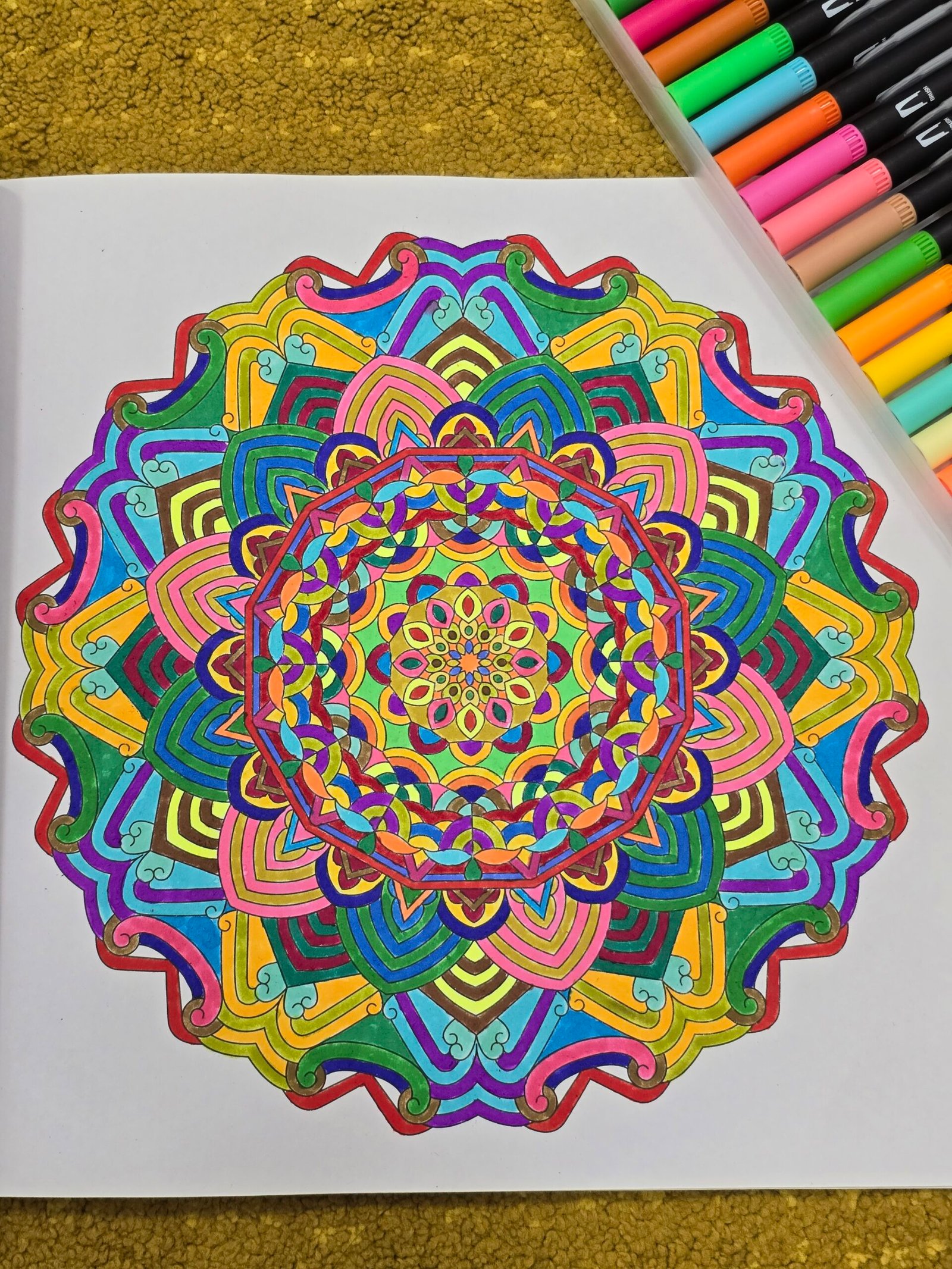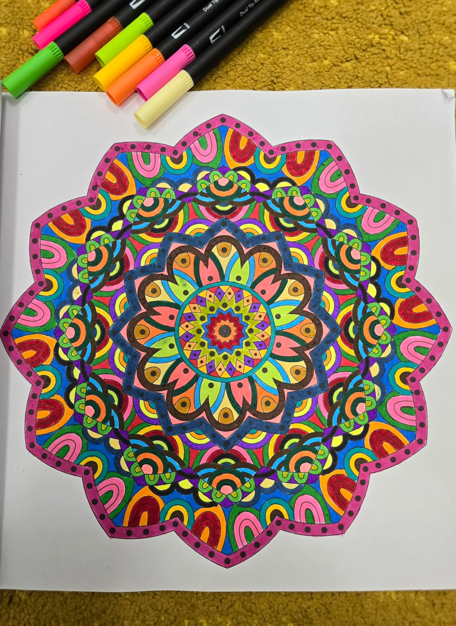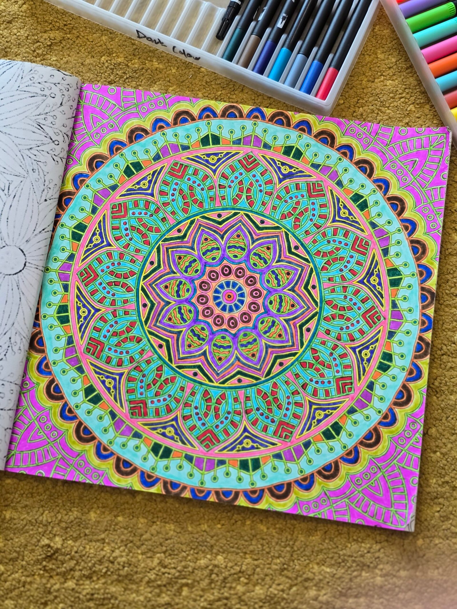 This gallery showcases my personal collection of colored mandala coloring artwork, created as a form of mindfulness and creative expression. Through color, repetition, and detail, each mandala represents a moment of presence and balance. These works are completed artworks, shared to reflect the process and emotional depth behind mandala coloring.