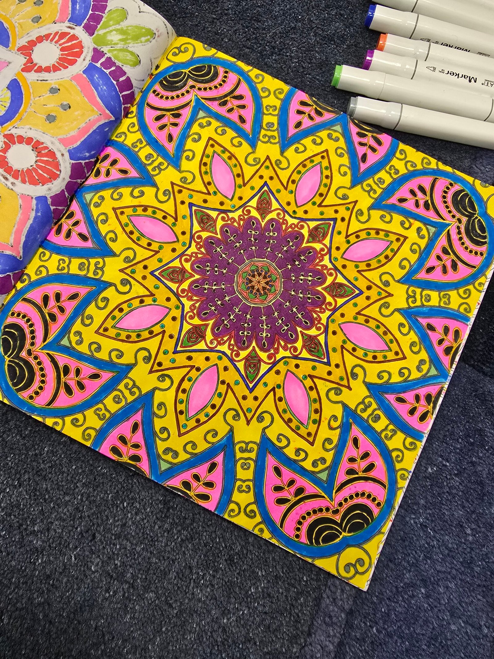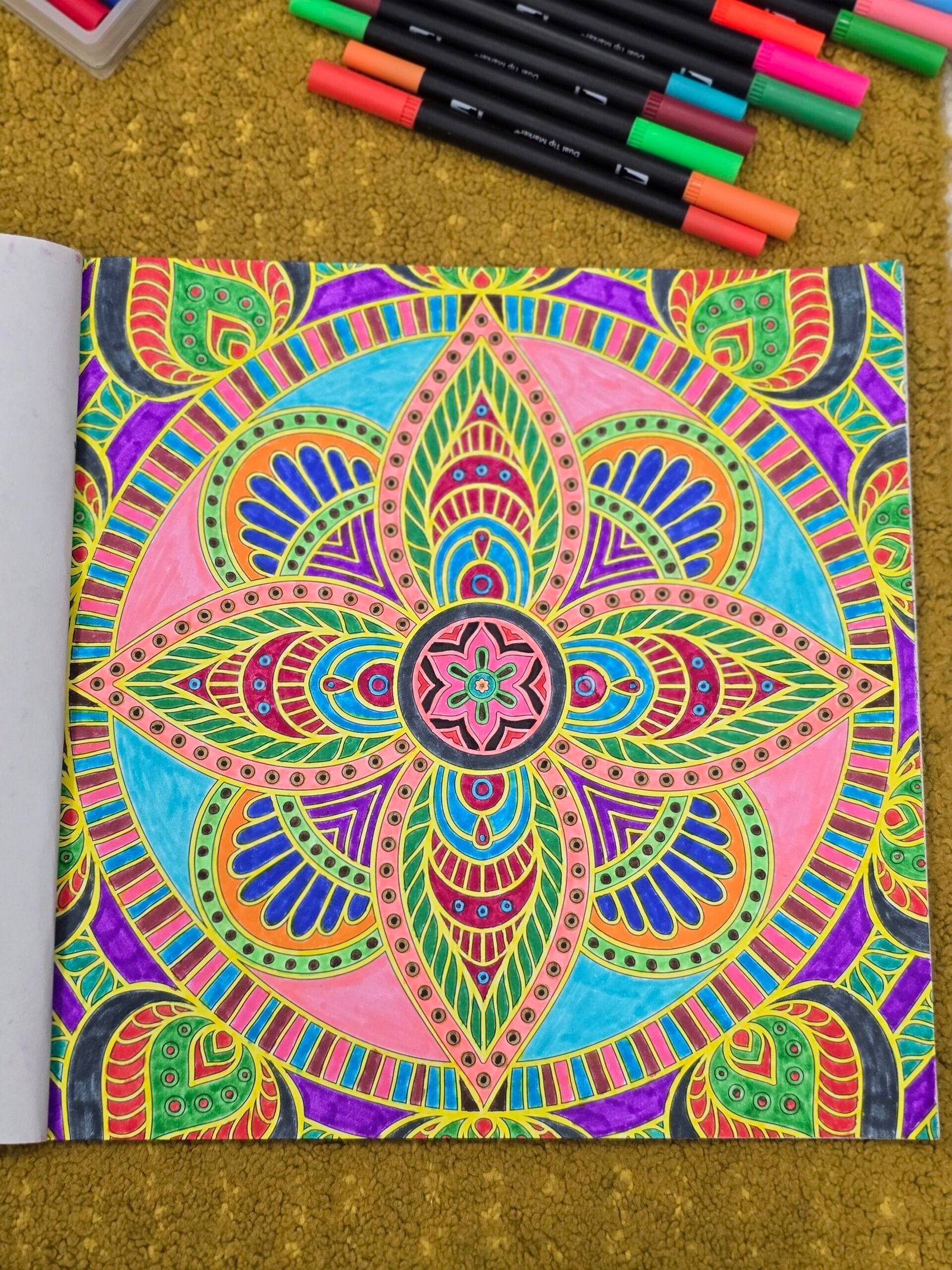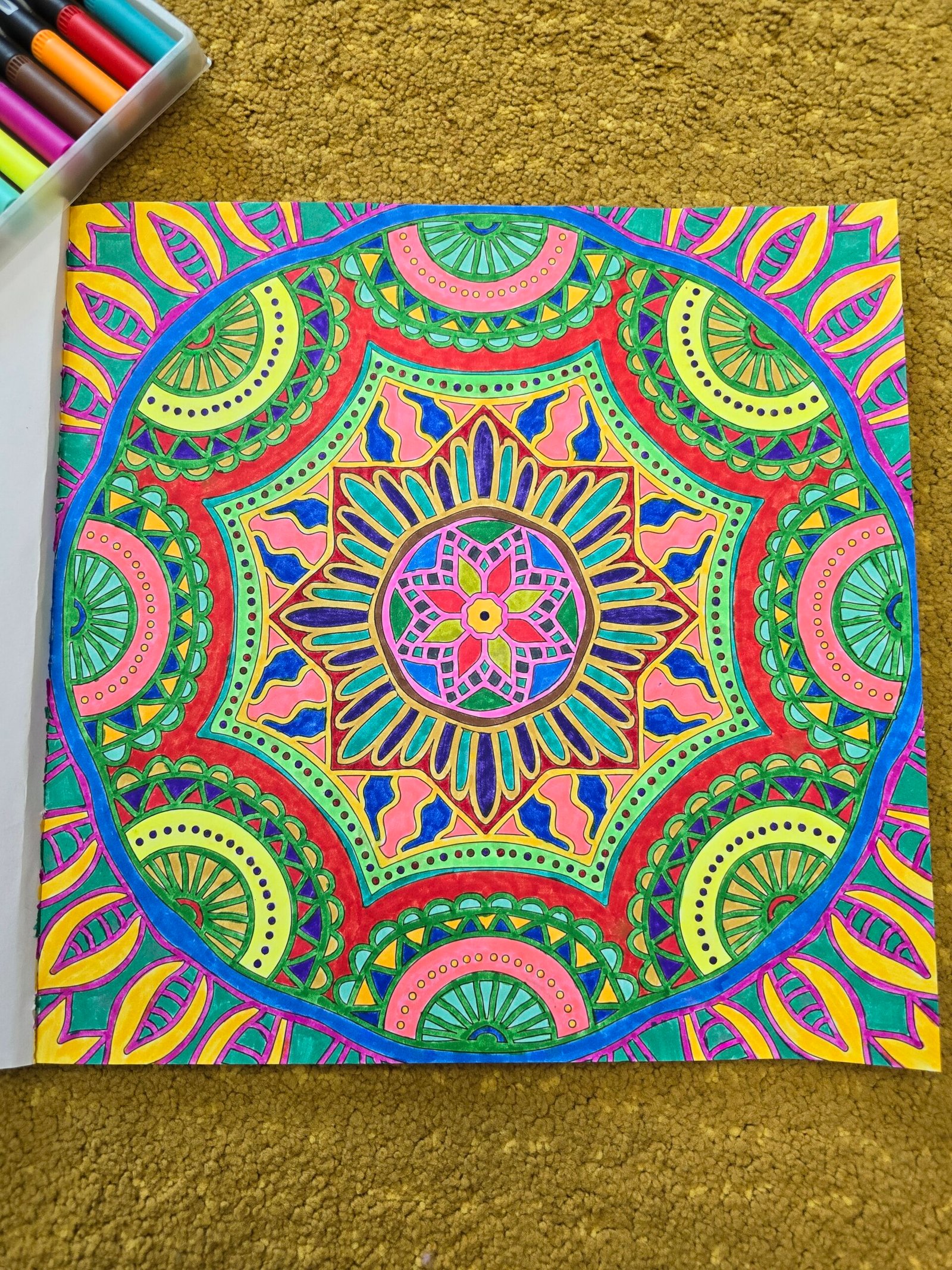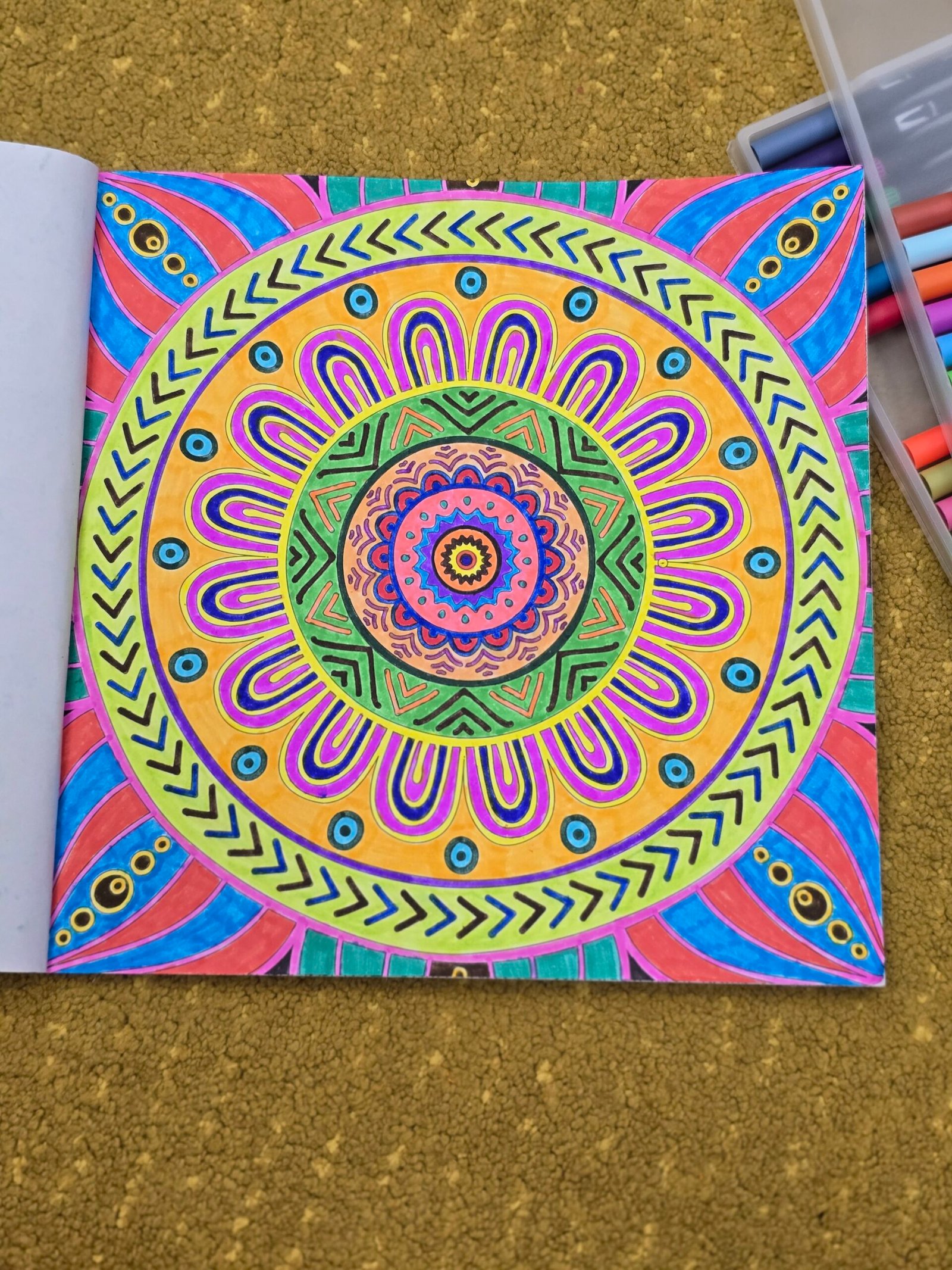 This gallery showcases my personal collection of colored mandala coloring artwork, created as a form of mindfulness and creative expression. Through color, repetition, and detail, each mandala represents a moment of presence and balance. These works are completed artworks, shared to reflect the process and emotional depth behind mandala coloring.