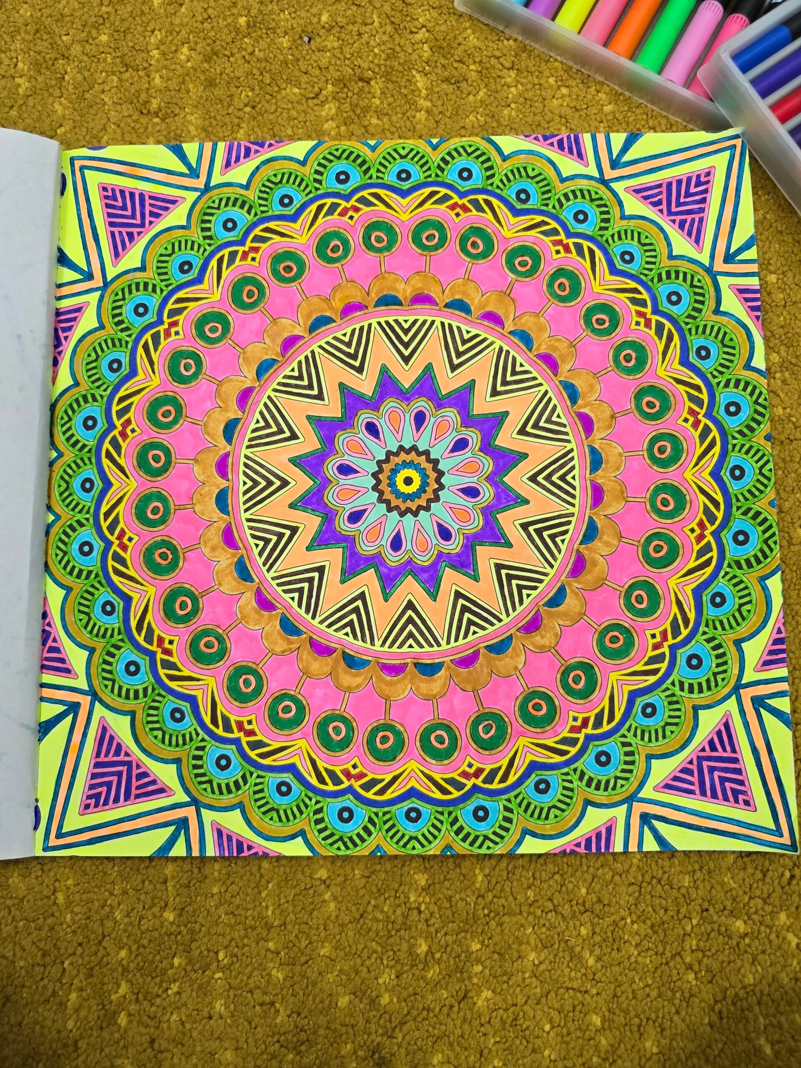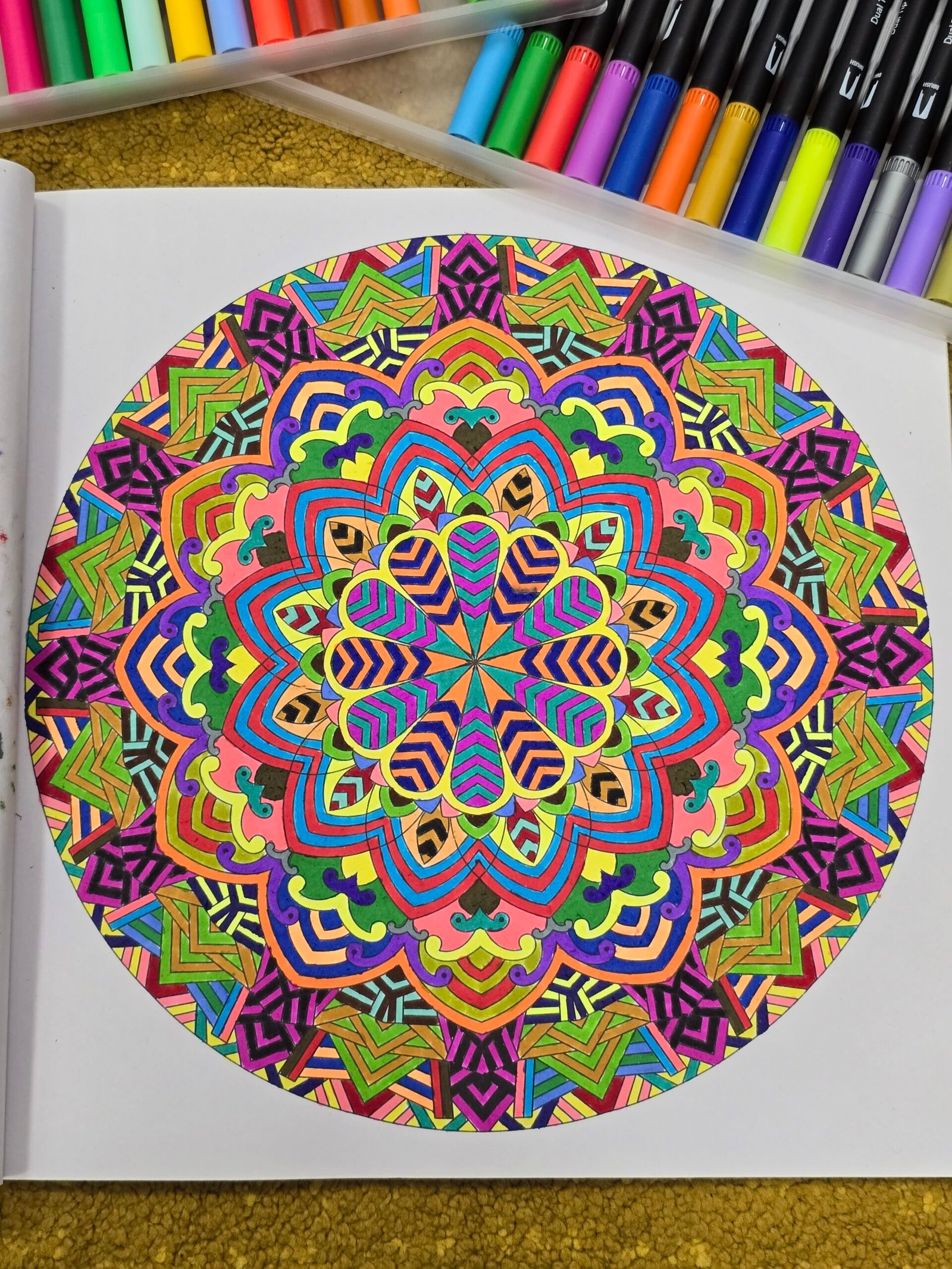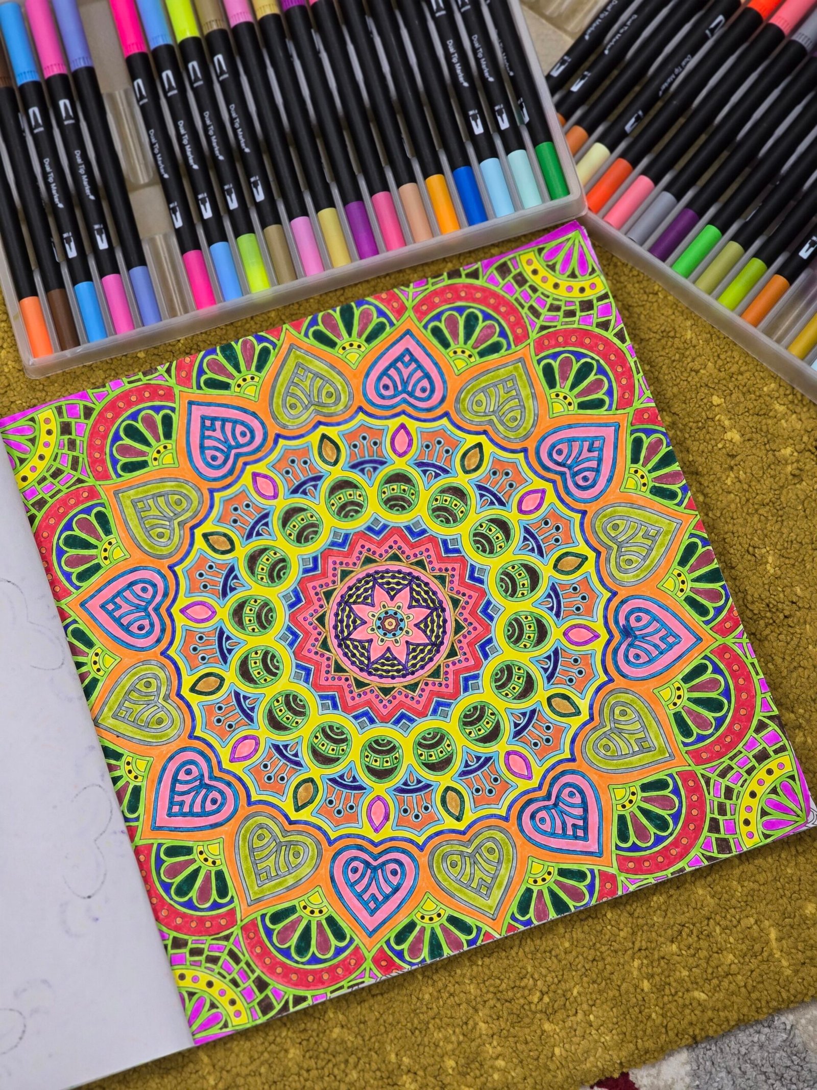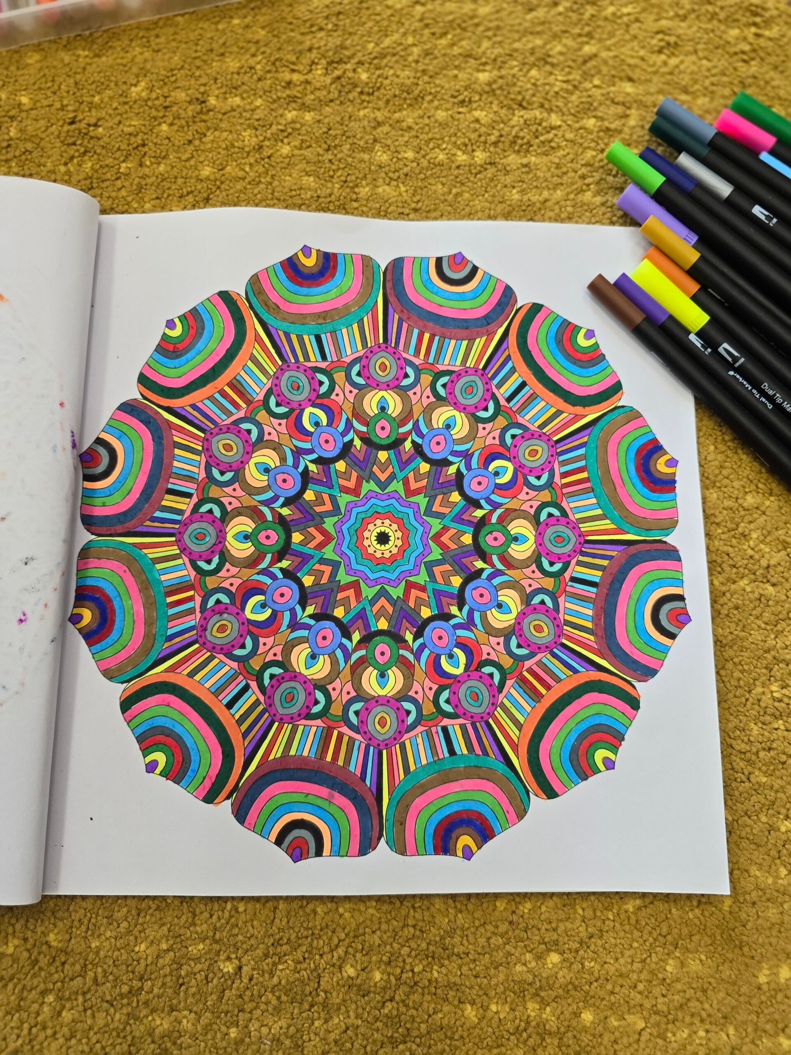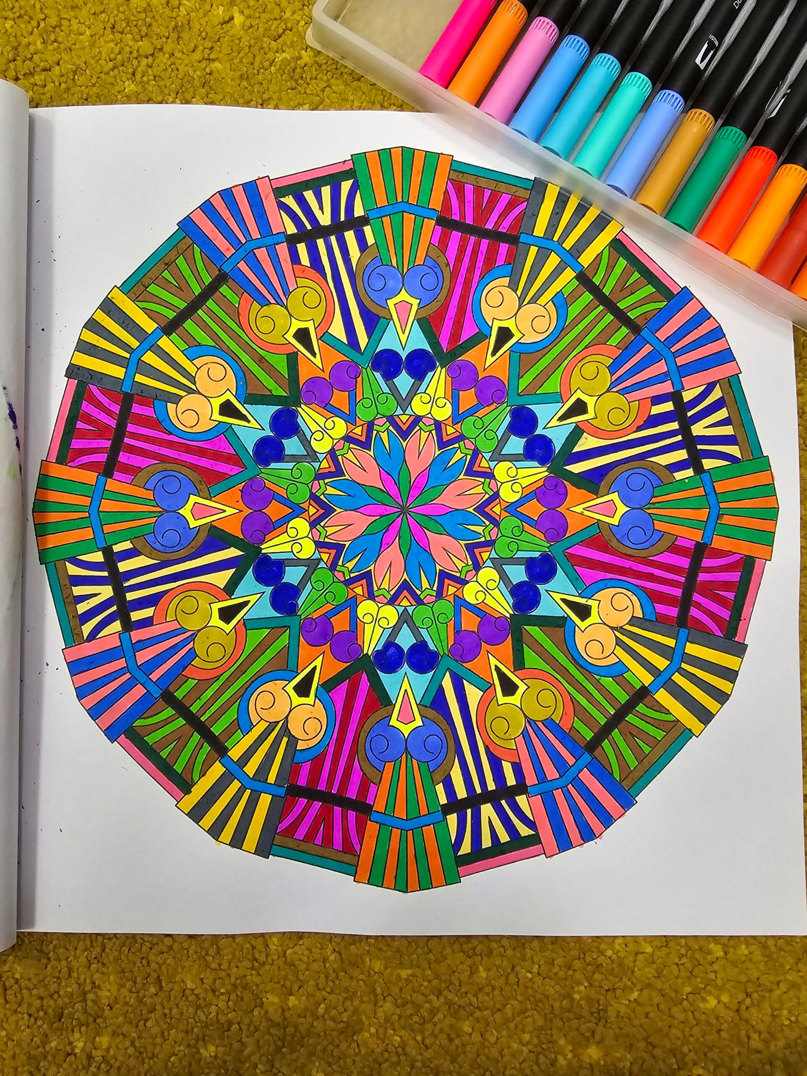 This gallery showcases my personal collection of colored mandala coloring artwork, created as a form of mindfulness and creative expression. Through color, repetition, and detail, each mandala represents a moment of presence and balance. These works are completed artworks, shared to reflect the process and emotional depth behind mandala coloring.