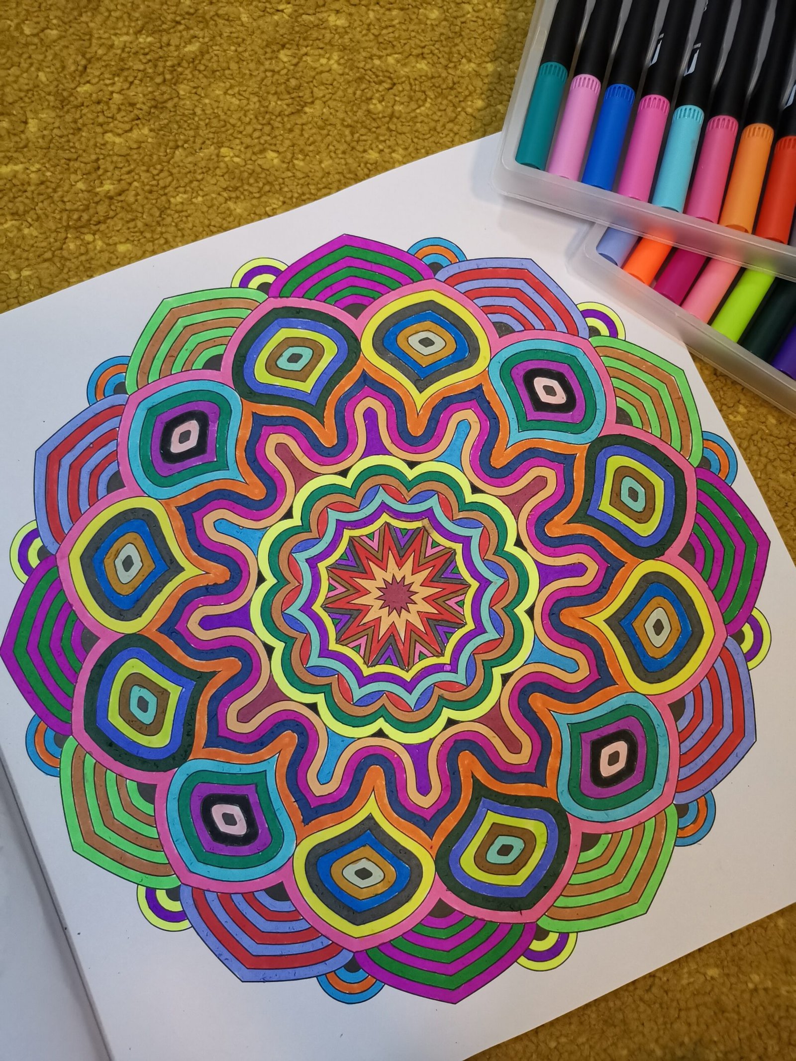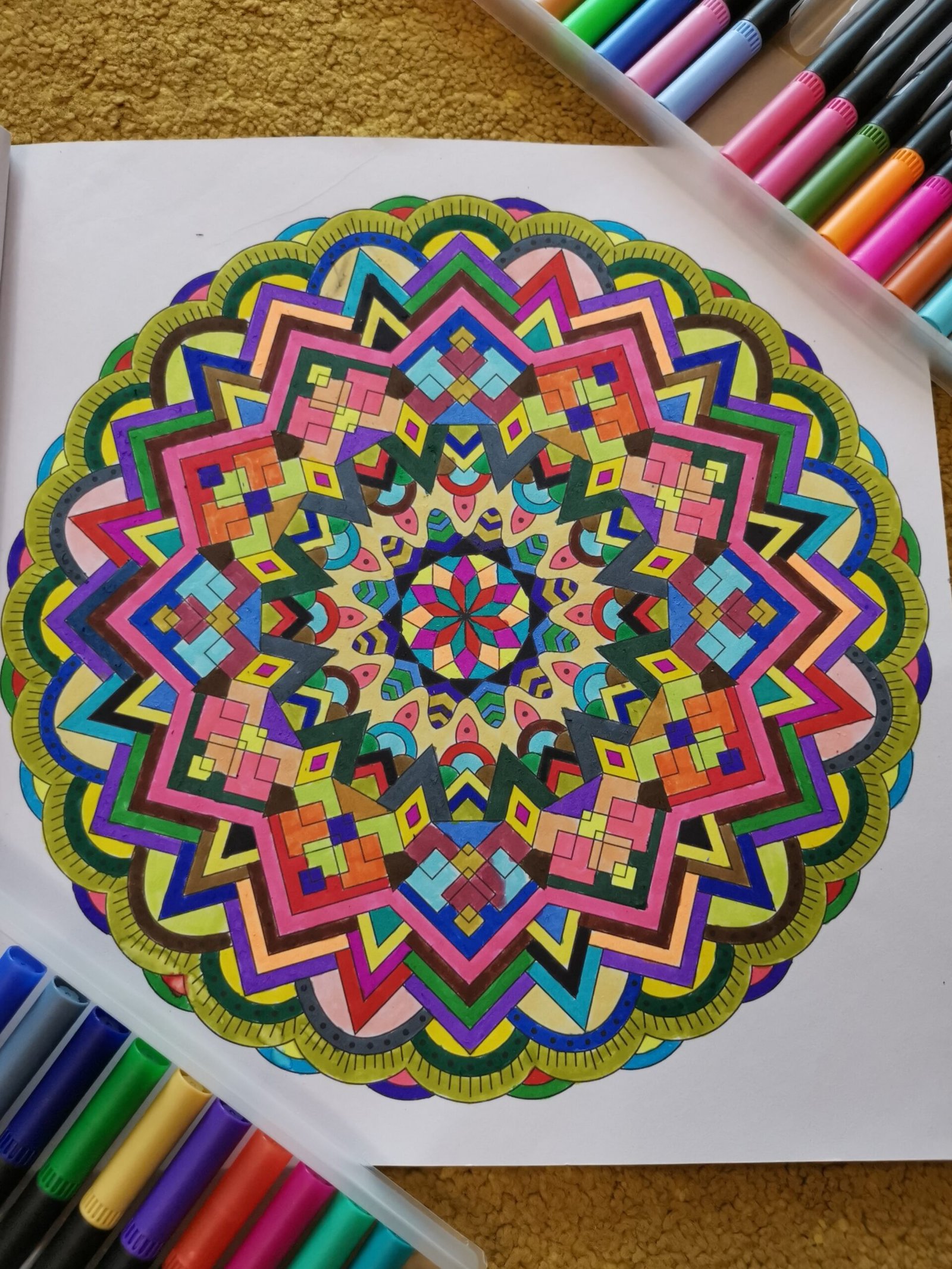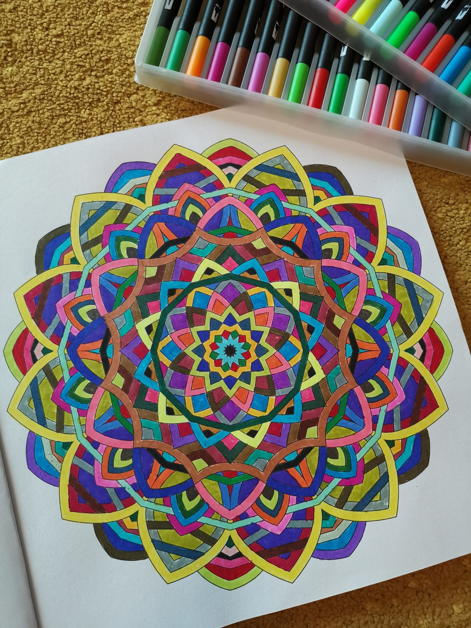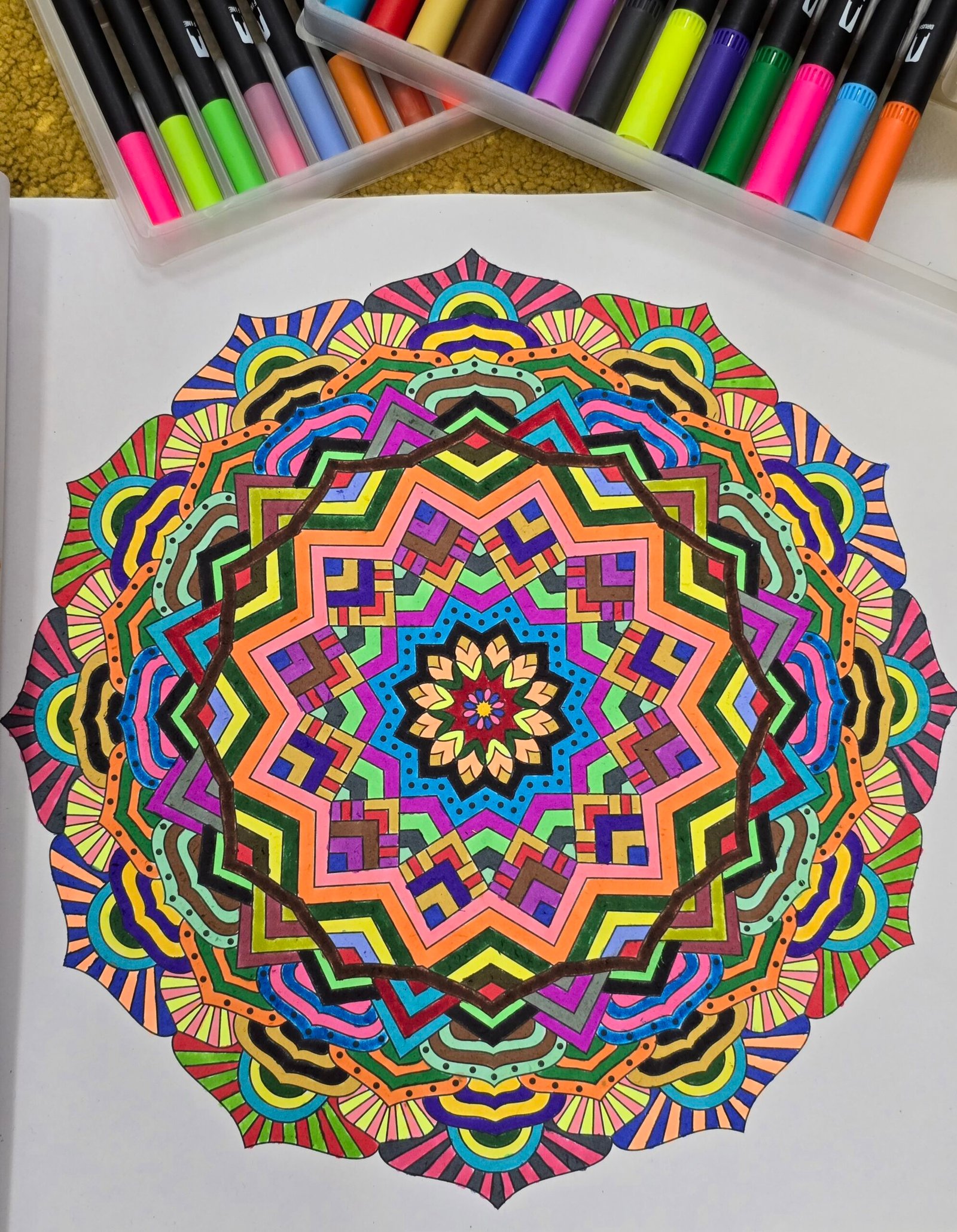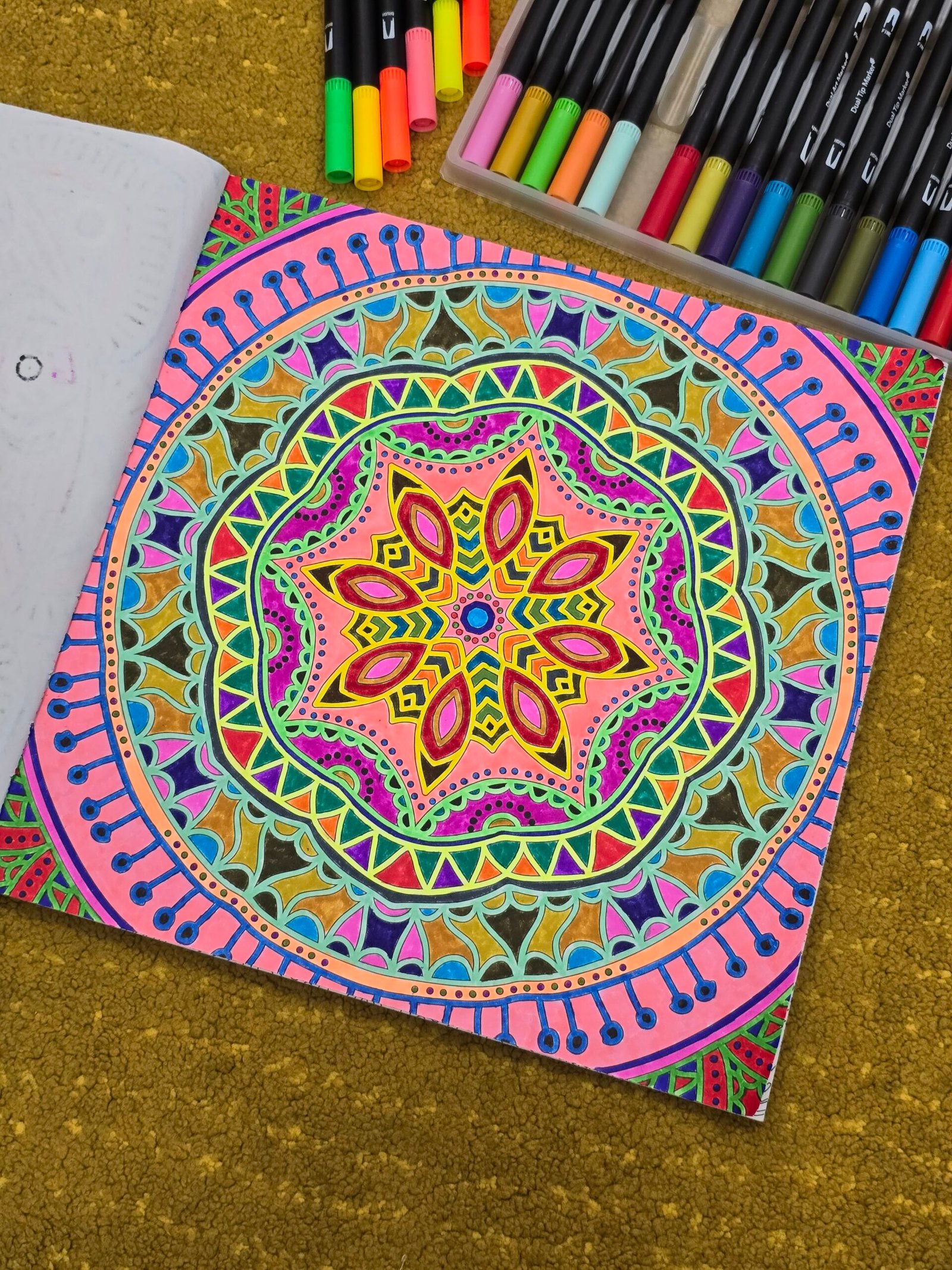 This gallery showcases my personal collection of colored mandala coloring artwork, created as a form of mindfulness and creative expression. Through color, repetition, and detail, each mandala represents a moment of presence and balance. These works are completed artworks, shared to reflect the process and emotional depth behind mandala coloring.